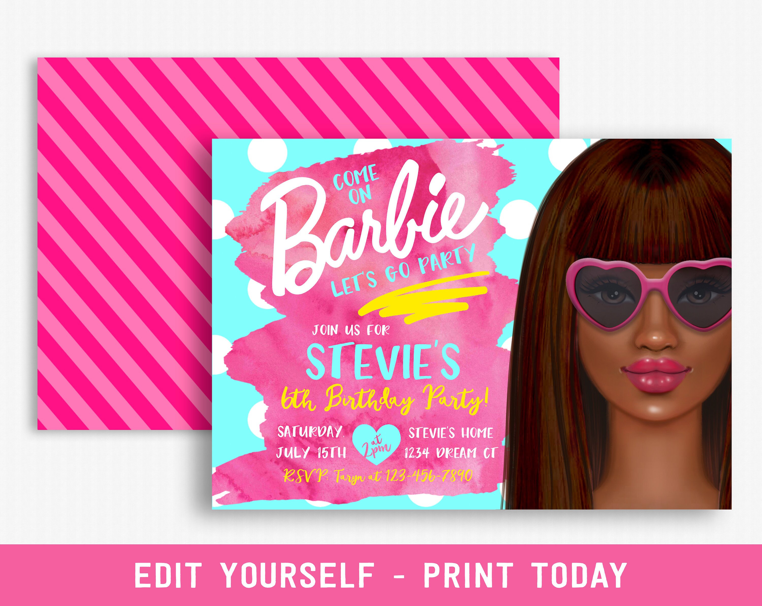 black barbie invitations